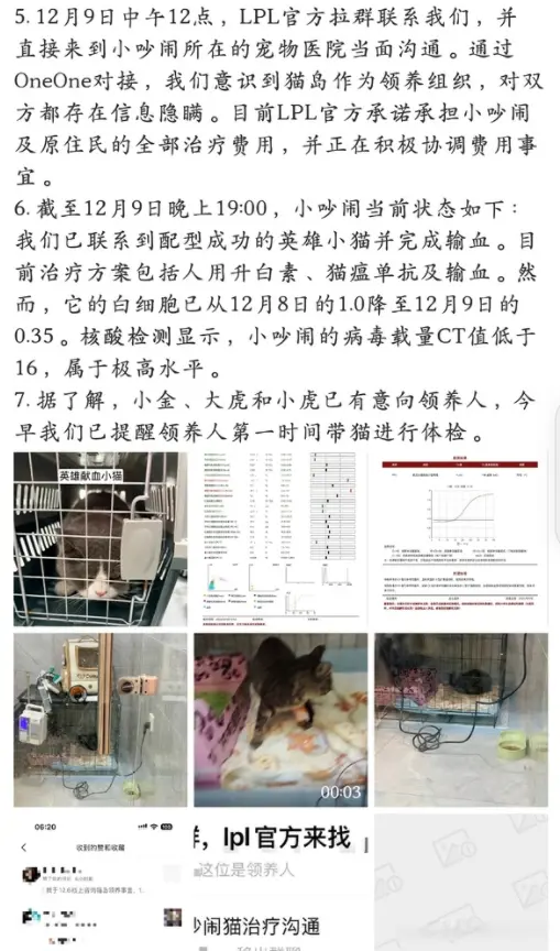 事件曝光后,LPL 官方第一时间发布回应,表示已关注此事,并为小猫启动救助措施,然而,网友并不买账,质疑声在社交平台发酵:“为什么被领养的小猫,没有接种任何疫苗?”更有人反向追问领养者:“既然家里原本就有猫,为什么那只猫也没有接种疫苗?”